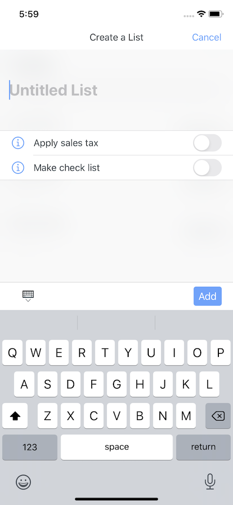 5) To input data for each option (such as the name, tax rate and more) you had to swipe within the middle box area. A list would easily convey the view’s affordances.