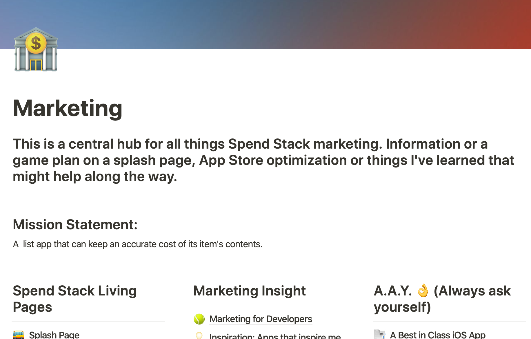 Expanding on this idea a little more, I also have fully formed documents that hold thoughts, ideas or things that I want my apps to be known for. In fact, the one I have in my Notion workspace is what my best in class iOS app post came from: