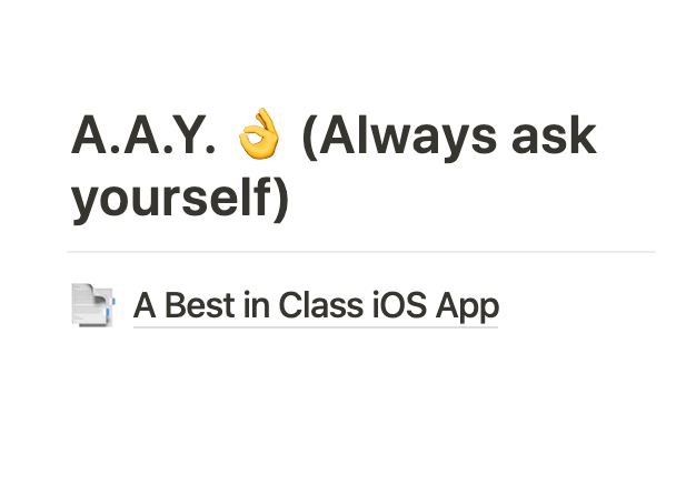Expanding on this idea a little more, I also have fully formed documents that hold thoughts, ideas or things that I want my apps to be known for. In fact, the one I have in my Notion workspace is what my best in class iOS app post came from: